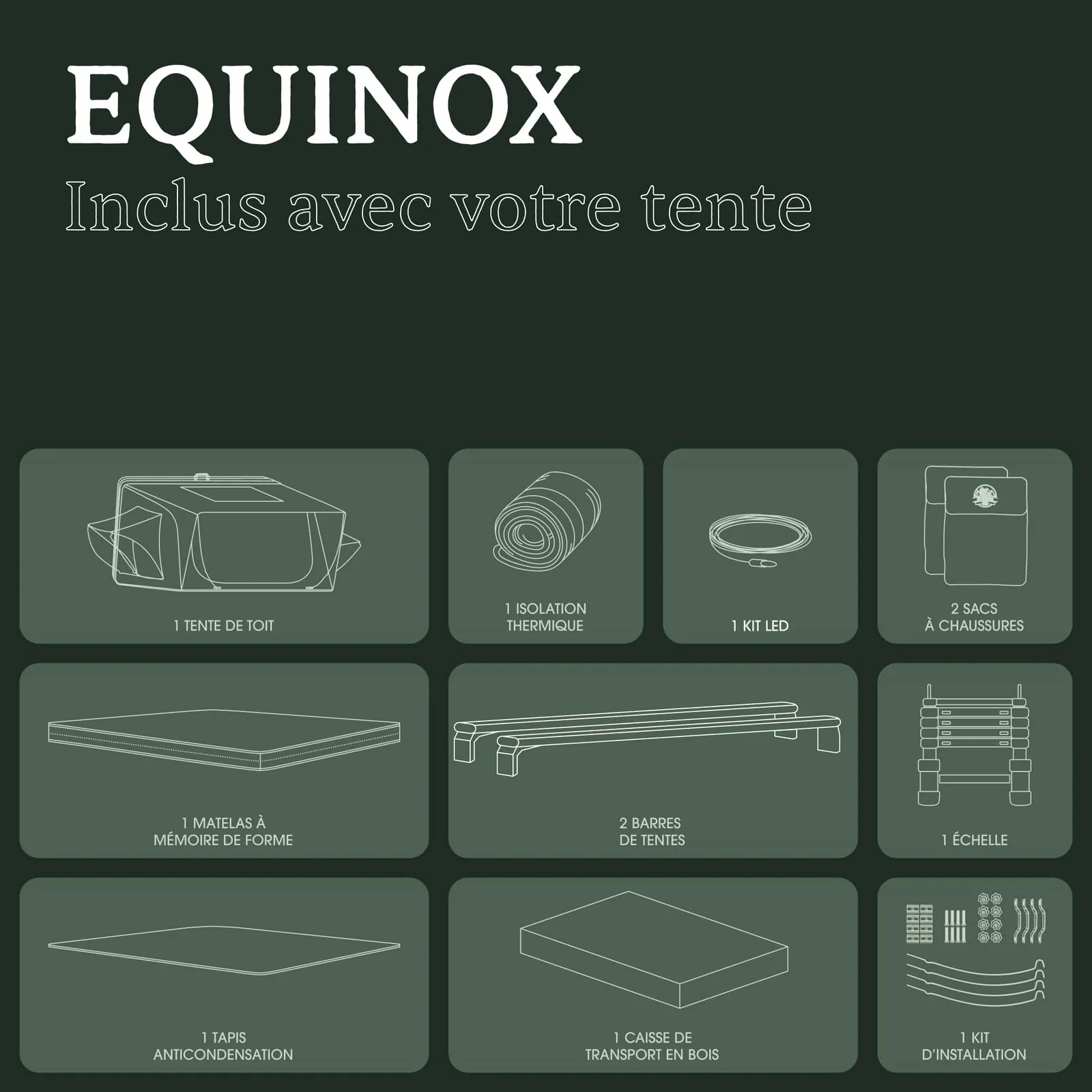 Conçue pour les voyageurs attentifs à l’encombrement et au poids sur le véhicule, l’Equinox de Go Overland se distingue par un profil particulièrement fin et une masse contenue, parmi les plus légères de sa catégorie. Cette conception favorise une intégration discrète sur le toit, une meilleure aérodynamique et une utilisation quotidienne sans contrainte, tout en conservant le confort et la simplicité d’une tente de toit rigide.