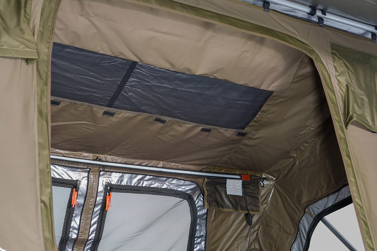Manipulation simple, même en solo, une fois la tente installée sur le véhicule. - Confort de couchage intérieurMatelas à mémoire de forme offrant un soutien ferme et confortable, adapté aux nuits répétées en bivouac. Le tapis anti-condensation limite l’humidité et améliore le confort sur la durée.
