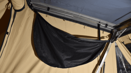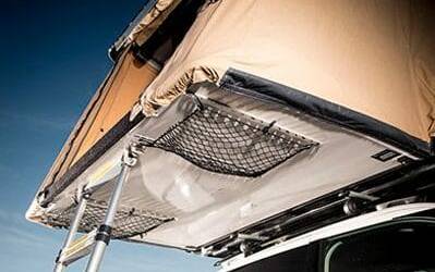 En raison du poids de la tente (63 kg sans échelle), la mise en place sur le véhicule nécessite au minimum deux personnes.